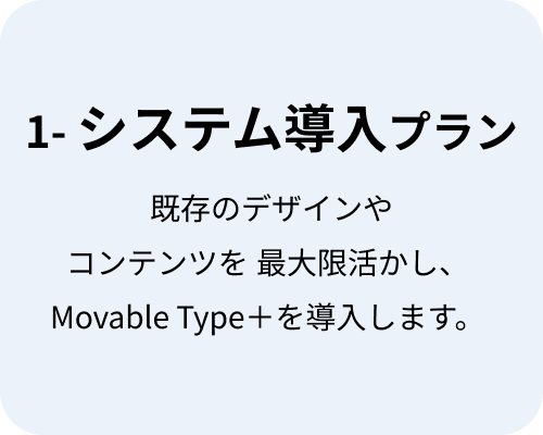 Movable Type のライセンス、サーバー利用料、サーバー管理、CMS やOS /ミドルウェアのアップデート、メールでのテクニカサポートをすべて含み、月々5,000円から利用可能。大規模サイトに対応できる上位プランもご用意しています。