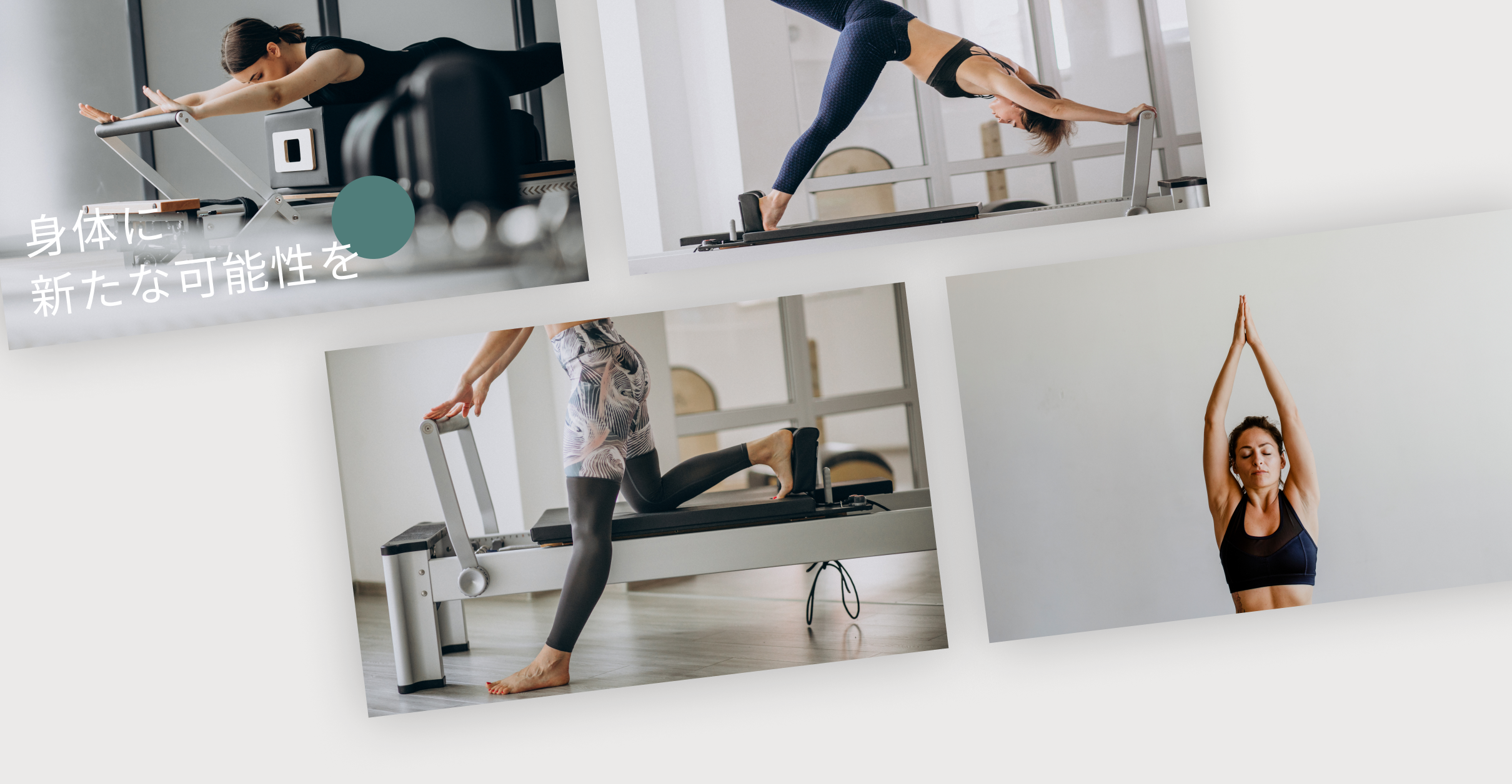 身体に負荷を掛けるのではなく、「柔軟に身体の可能性を広げていく」というPilates Synergyさまのイメージから、しなやかで健やかな印象の写真を選定しています。
